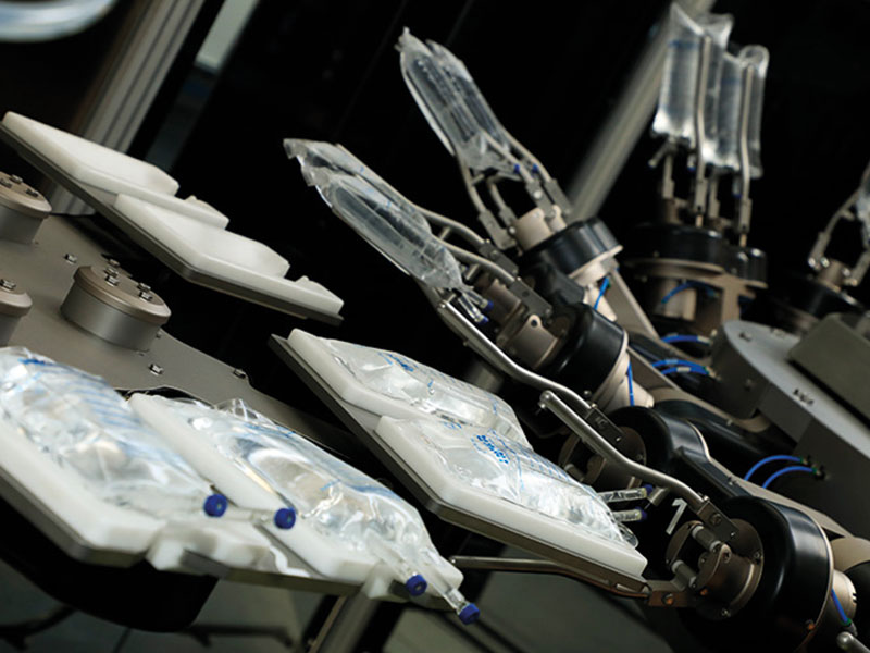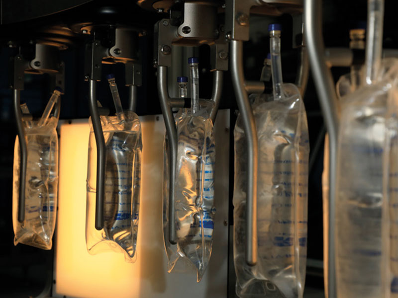 The BAG INSPECTION machine overcomes the difficulties related to the soft container itself. It is the ideal solution to inspect single-chamber bags with different shapes and sizes.The bags could be automatically fed in-line from the upstream equipment onto the conveyor belt by means of robots, which orient and transfer them to the main inspection carousel. It is also possible to consider manual loading, but in this case, the related speed depends on the operator's skills.The bags are inspected four times for particle detection with inverted positions up-side down. Moreover, each inspection station is equipped with high-resolution cameras and brand-new illuminators.Cosmetic inspections for container walls, caps and ports, and high-voltage leak detection unit are available.